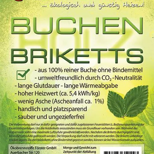 Les briquettes de bois de hêtre sont composées exclusivement de particules très fines (sciure de bois). Grâce à la sélection rigoureuse des matériaux et à leur haute compression (300-400 bars), elles constituent un produit très propre, compact et polyvalent. Leur combustion est régulière et uniforme. Relativement rigides, les briquettes conservent bien leur forme et s’allument lentement et uniformément. Si la flamme faiblit au bout d’une heure environ, il suffit d’ajouter une nouvelle briquette, du bois ou quelques morceaux de briquettes de résineux. Les briquettes de bois de hêtre maintiennent les braises incandescentes pendant longtemps. Ces briquettes de bois sont certifiées DINplus (DIN EN ISO 17225-3).